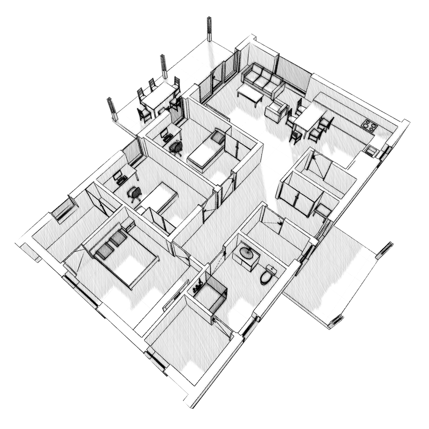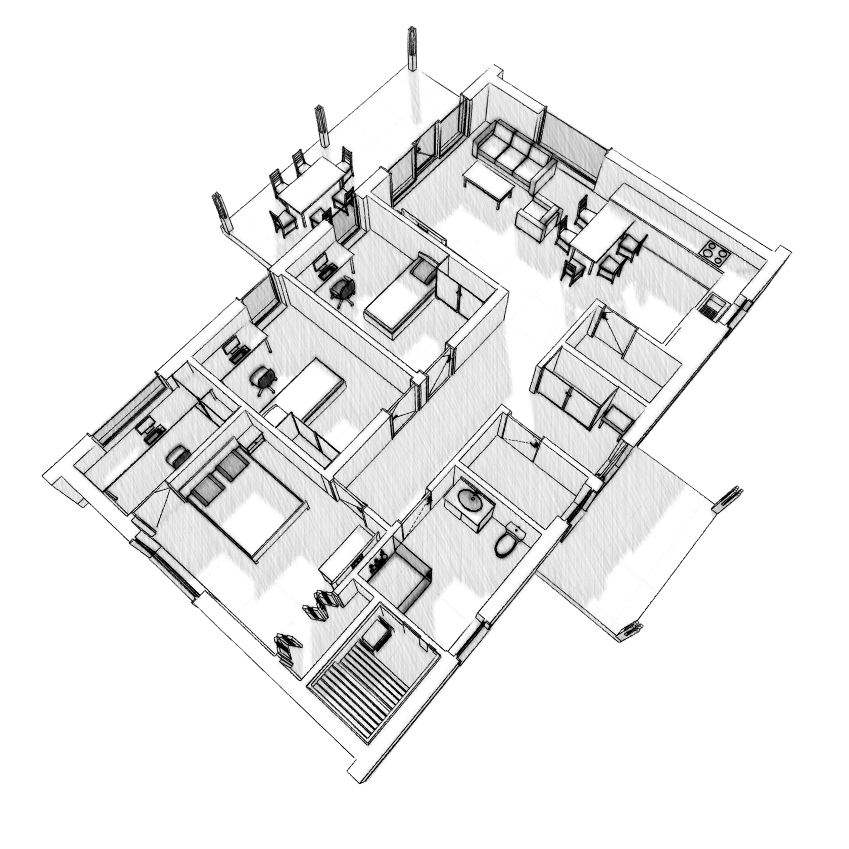 Дом возводится по финской каркасной технологии. Используются только качественные и проверенные временем материалы и точные профессиональные инструменты DeWalt и Swanson Tool. Дом имеет три конфигурации: дом, плюс сауна и кабинет; дом, плюс мастер-спальня; дом, плюс две гардеробные и постирочная.