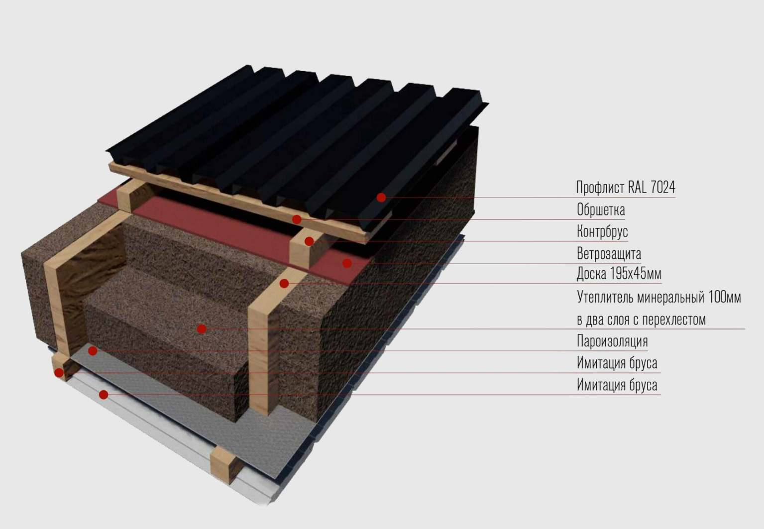 Мы используем для утепления вашего дома плиты из каменной ваты, которые являются негорючими, паропроницаемыми, с высоким коэффициентом упругости (что позволяет утеплителю со временем не сползать в конструкции). В тоже время, данный материал служит эффективной звукоизоляцией.
